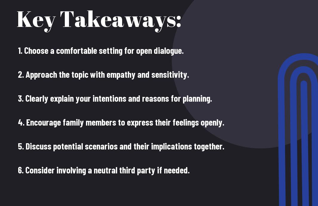 Following this guide, you can approach the often challenging topic of estate planning with your family in a constructive and respectful manner. Start by creating an open environment, where everyone feels comfortable sharing their thoughts and concerns. It’s vital to listen actively to what your loved ones have to say, as this mutual exchange fosters trust and understanding. Don’t hesitate to schedule multiple discussions if necessary, as complex topics often require more than one conversation to cover all the bases adequately.